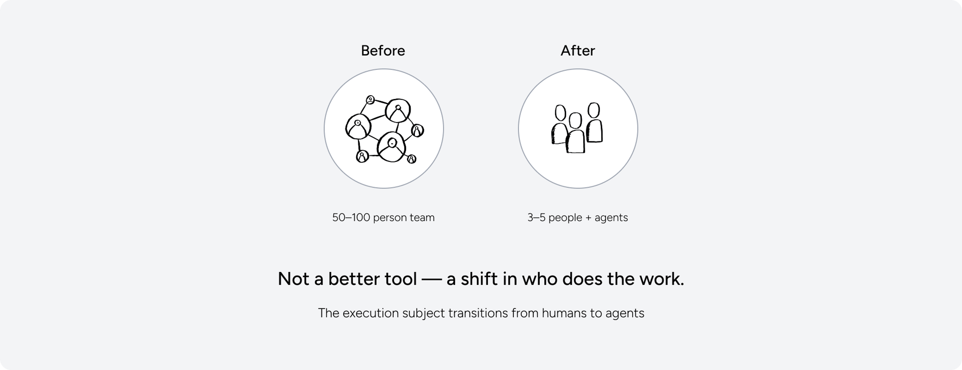 Over the past year, AI tools have flooded the market. The question most people ask is: "Is AI going to replace us?" I don't think that's the right question. What's actually happening is subtler and more consequential: in an expanding range of contexts, the entity performing the work is shifting from humans to agents. This isn't an efficiency upgrade. It's a structural change in how organizations operate.